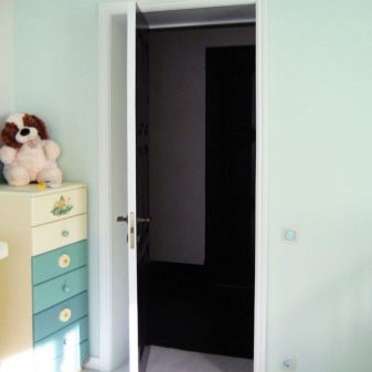 Es sollte beachtet werden, dass dunkle Farbtöne nicht in einem kleinen Raum oder Büro gekauft werden sollten. Dank solcher Türflügel werden die Räume düster und eng.