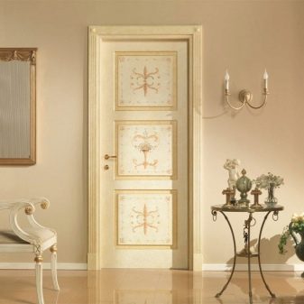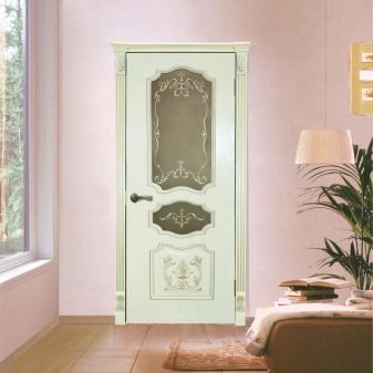 Wenn aus irgendeinem Grund die hellen Innentüren gesichtslos und langweilig erscheinen, ist es empfehlenswert, Produkte mit zusätzlichen Elementen zu kaufen. Zum Beispiel Vergoldungen, Bronze, Glaseinsätze oder ungewöhnliche Stifte.