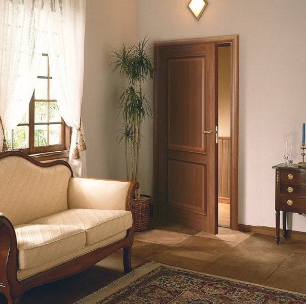 - Klassisch Impliziert eine gewisse Strenge und Fülle, also ist es am besten, helle Nussbaum- oder Lichtmodelle in einem solchen Raum zu installierenEiche Hauptsache ist, dass die Innentür prägnante Dekorelemente oder Glaseinsätze enthält.
