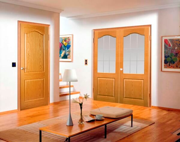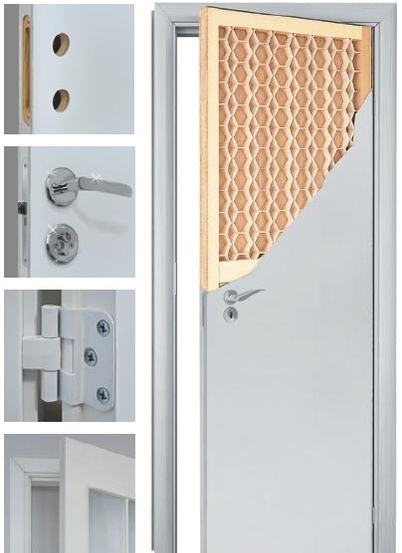 Jedes Modell ist ein Türblatt.bestehend aus Wabenfüller, MDF, eingebauter Verriegelung und Hülse zur Befestigung von Scharnieren. Das Produkt selbst kann aus MDF oder Massivholz bestehen, dessen Kanten mit einer speziellen verschleißfesten Folie verarbeitet werden.
