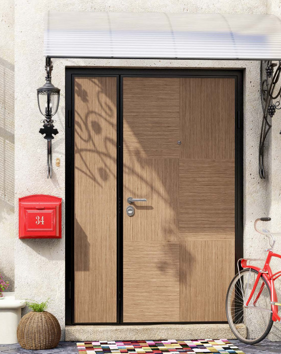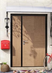 - Metalltür mit MDF-Platten, Furnier und PVC. Dieses Modell sieht seriös und vorzeigbar aus, hat hervorragende Schall- und Wärmedämmeigenschaften, ist langlebig und kostet viel weniger als natürliche Holzprodukte. Es gibt eine große Auswahl an Farben und Formen des Musters - von der Imitation von Holzfasern bis zur Wirkung von Metall oder Kunststoff;