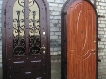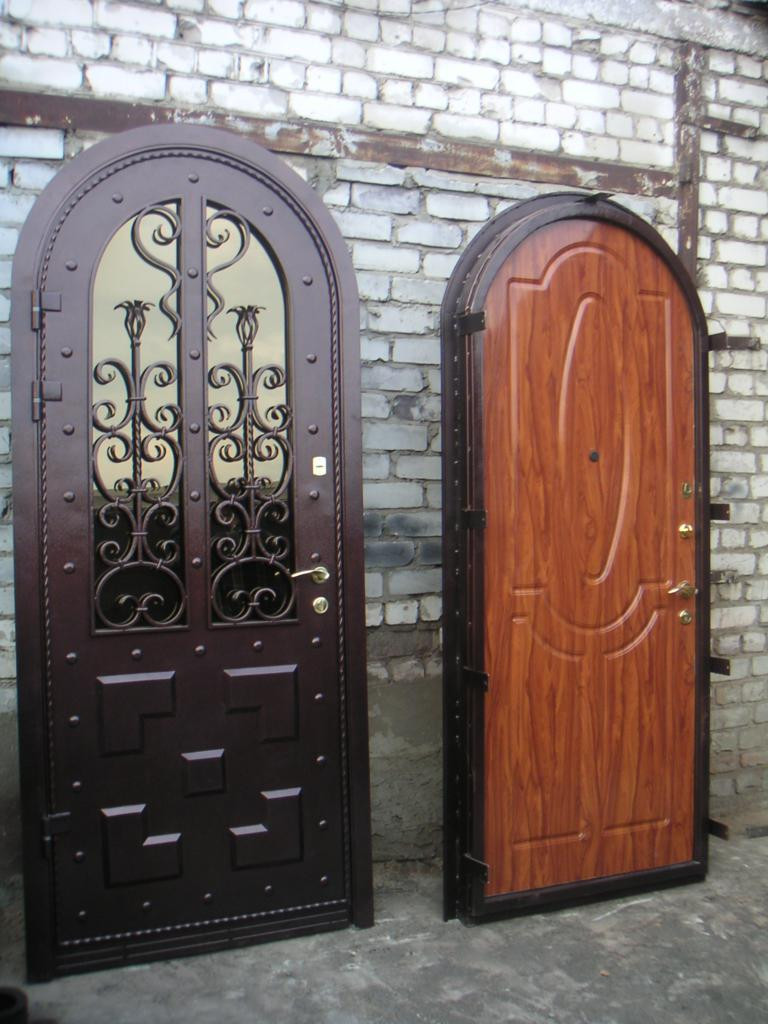 - Gewölbte Metalltür. Als Haustür für Geschäfte, Büros und Landhäuser. Es kann ein, zwei und drei Klappen haben, es wird nach individuellen Messungen des Bogenradius gemacht. Es wird sowohl in einer Budget-Version mit Pulverbeschichtung, als auch in einer Elite-Version mit Glas, Eiche und Schmiedearbeiten ausgeführt;