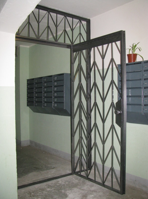- Gittertür für die Vorhalle. Führt eine rein Schutzfunktion aus, die die Sicherheit der Räumlichkeiten gewährleistet.Das Modell ist zuverlässig, preiswert, kann mit geschmiedeten Elementen verziert werden;