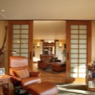 - erhebliche Einsparungen an Speicherplatz - zum Schließen ist kein Platz erforderlich. Die von der Schwingtür belegte Zone galt früher als tot, jetzt rutscht die Tür zur Seite weg und an der Stelle, an der sie gespart wird, kann man jetzt sogar Möbel aufstellen oder anders benutzen, nichts hindert es;
