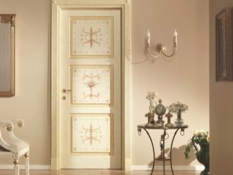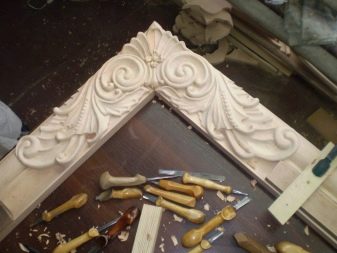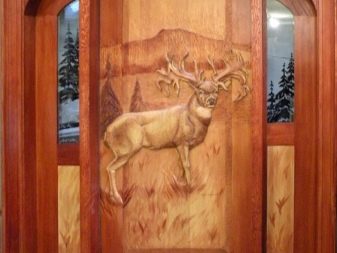 Bei der Verlegung verwendet man geschnitzte Muster, die an der Oberfläche der Tür angebracht sind. Diese Technik ist gut, weil sie sogar die alte Struktur wiederherstellen kann.Es muss jedoch nicht aus den Scharnieren entfernt werden.