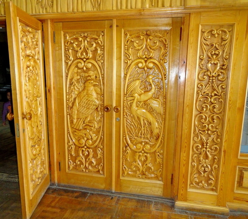 Schöne geschnitzte Holztüren werden dazu beitragen, jedes Interieur zu dekorieren und das Haus vor den negativen Auswirkungen der Umwelt zu schützen. Meistens sind sie am Eingang des Hauses installiert, um die Individualität und den tadellosen Geschmack der Besitzer zu betonen.Im Inneren des Hauses sind hölzerne Interieurs entworfen, um den klassischen oder rustikalen Stil zu betonen, der zurzeit sehr populär ist.