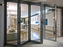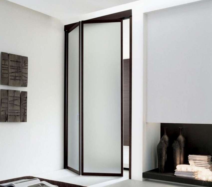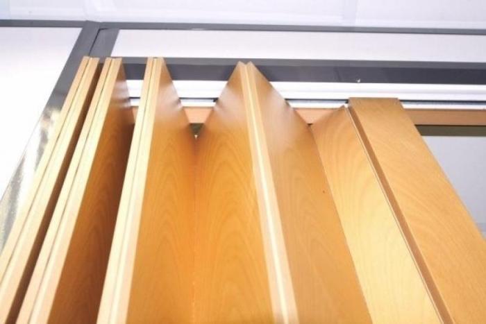 - Alle Falttüren in ihrer Gestaltung haben eine Schiene, die sich oben befindet. Dies ist ein großer Vorteil gegenüber Gleitstrukturen, denn wenn man durch nichts hindurch geht, ist der Boden nicht vorhanden. Sie werden nicht zögern können.