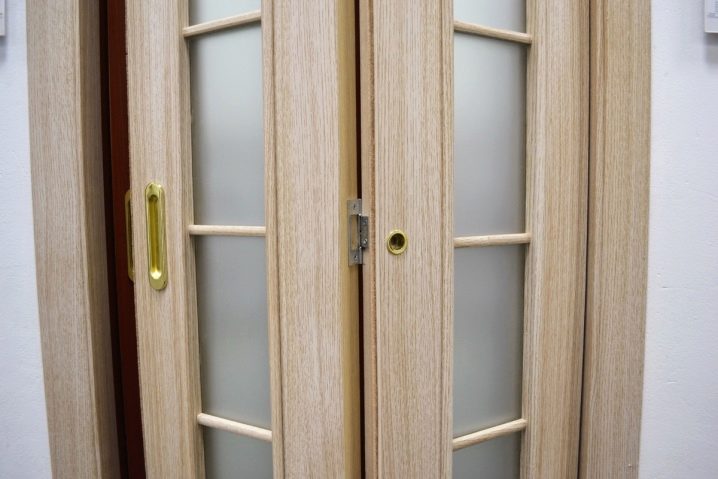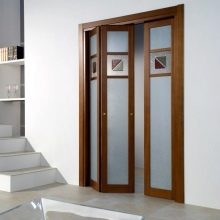 - Um vollständige Geräuschlosigkeit zu gewährleisten, haben solche Strukturen Schließer. Dank ihnen kann die Falttür sanft entlang der Führungen gleiten.