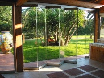 Oft bevorzugen viele Falttüren aus Polycarbonat. Meistens sind sie in dem Fall installiert, wenn plötzliche Temperaturabfälle im Raum auftreten. Daher sind solche Modelle perfekt für den Einbau am Eingang zur Loggia, zum Balkon oder zur Küche.
