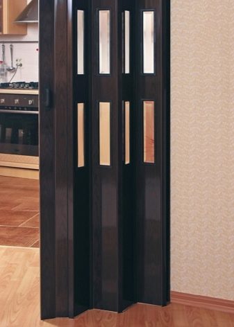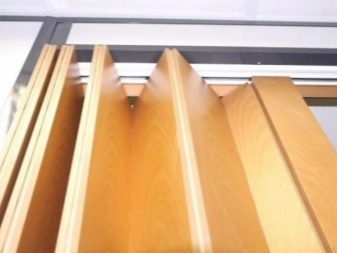 Sie können mehrere Abschnitte hinzufügen, und auf diese Weise werden Sie die Öffnung ohne größere Schwierigkeiten erweitern. Doors-Akkordeon kann zwei Optionen für den Mechanismus haben. Die Struktur kann auf der unteren Schiene installiert werden, oder Sie können nicht auf solch eine komplexe Struktur zurückgreifen und die Tür auf der oberen Schiene installieren.