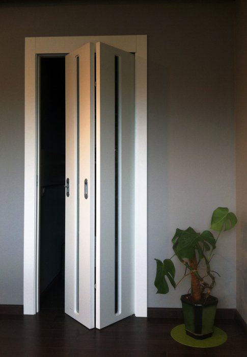 - Sie werden keine Probleme haben, mit denen die klassischen Schwingtüren oft konfrontiert sind. Also, jede Falttür wird sich nicht von einem Zug oder Wind öffnen, wie eine Schaukel, und wird nicht allein knallen. Es ist komplett leise und leicht.