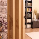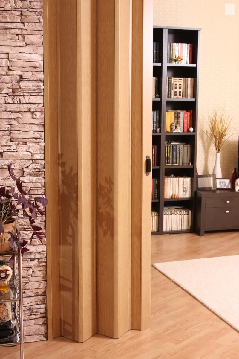 - Kompakter ist Akkordeon-Tür. Ihre Leinwand ist in gleiche Teile geteilt, so dass sie nicht stark über die Tür hinausragt. Dieses Modell ist für enge und kleine Räume geeignet.