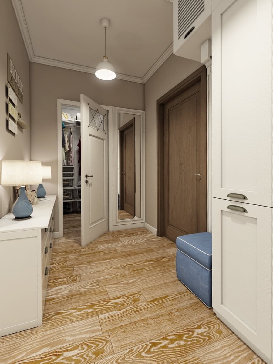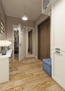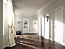Das erste Zeichen ist die Harmonie des Produkts mit dem Boden. Egal ob Linoleum in Ihrem Zuhause oder Laminat ist, die Farbkompatibilität spielt eine entscheidende Rolle. Manchmal wird die Tür im gleichen Farbschema wie der Boden gewählt, um einen Kontrast zur Hauptfarbe der Wände zu schaffen. In diesem Fall übernimmt das Produkt eine Akzentrolle. Wenn versucht wird, die Tür nicht zu zeigen, wird die Öffnung um sie herum mit einer anderen Farbe emittiert, und die Türfläche selbst wird in Farbe nahe der Wände gewählt.