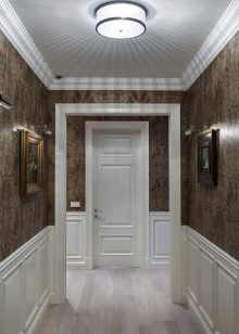 - Capital Verkleidung wird das Design der Tür im gleichen Stil mit Tapeten sein. In solchen Fällen verschmilzt die Tür vollständig mit der Wand, aber manchmal installiert sie keinen Griff.