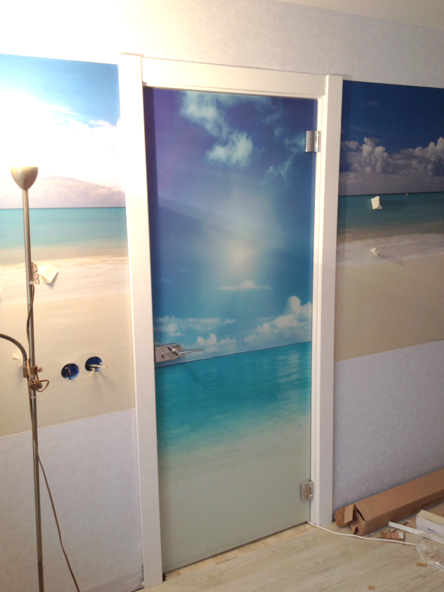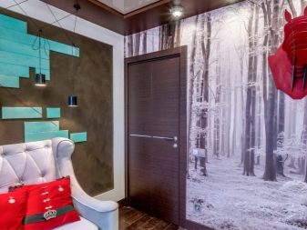 Die Türverkleidung kann mit Fotodruck dekoriert werden. Manchmal ist das Bild in Abteilen verteilt, und manchmal ist es ein durchgehendes Blatt, das den Hauptbereich des Produkts einnimmt.