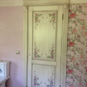 Der französische Provence-Stil zeichnet sich auch durch Holzkonstruktionen aus, aber für die meisten von ihnen ist ein bescheideneres Design charakteristisch. Die Hauptfarbe dieser Richtung ist weiß. Manchmal sind Produkte in Beige, Hellgrün oder Rosa gehalten. Ein Merkmal der Tür ist ihre vyshkurennost "antik".