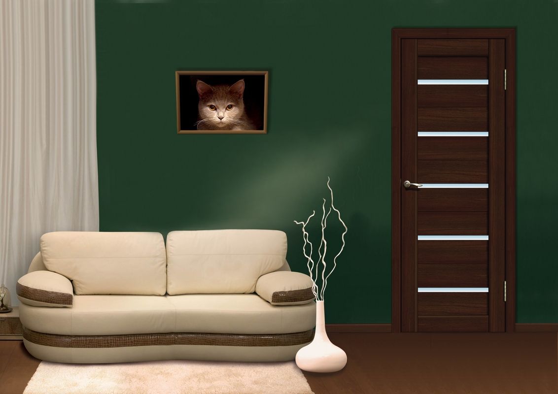 - Einige Stile werden ermutigt, ein großes Gemälde an der Wand zu haben. Es ist unter dem Bild und Sie können die Tür verkleiden, besonders wenn es mit einem Schwingmechanismus ausgestattet ist.
