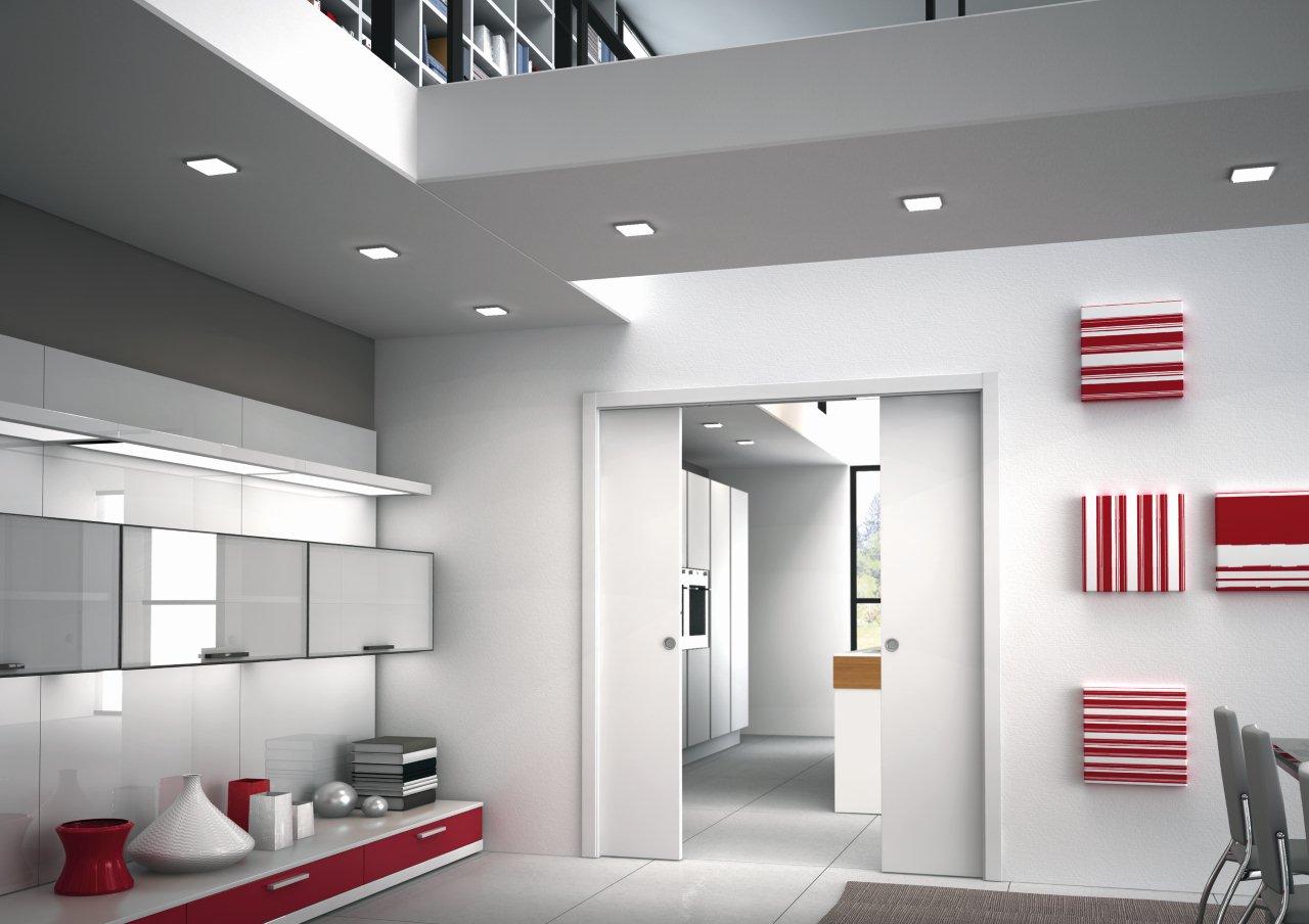 - Der Basisteil der Kaskadentüren ist verfügbar stationäre Leinwand oder beweglich. Jede der Leinwände hat ihre eigenen Führungen. Sie können gleichzeitig in einem Teil der Türöffnung platziert werden.