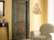Aber gealterte Modelle sehen natürlich nicht weniger vorzeigbar aus. Sehr luxuriöse Modelle aus massivem Kiefernholz. Solche Holztüren können mit ihren eigenen Händen gealtert werden, indem man streicht, bürstet, patiniert und andere Methoden. Auch gealterte Türen bestehen aus MDF. Solche Designs können vorgefertigt gekauft werden, und Sie können sie künstlich mit Ihren eigenen Händen altern lassen.
