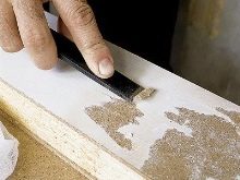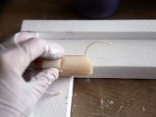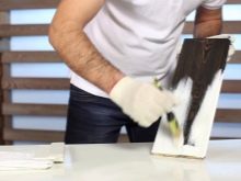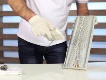 Paraffin sollte vorsichtig mit einem Spatel von der Farbe getrennt werden. Und keine Kratzer hinterlassenDie Oberfläche sollte der alten ähneln und nicht durch mechanische Beschädigung beeinträchtigt sein. Danach müssen Sie die Oberfläche polieren und eine Schicht Wachs auftragen. Das Wachs wird das Gemälde vervollständigen und helfen, den Effekt eines hellen antiken Glanzes an der Tür zu erzeugen.