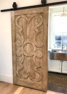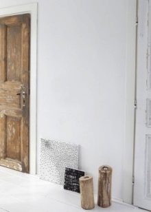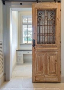 Dieses Design kann in den Raum installiert werden, dekoriert minimalistischer Stil. Dieses Akzentdetail kann solch ein anscheinend rustikales Interieur wiederbeleben. Geschmiedete Türen mit Gittern oder Holzmodelle mit Schnitzereien werden sehr gut aussehen. In einem solchen Innenraum sind künstlich gealterte Modelle besser geeignet.