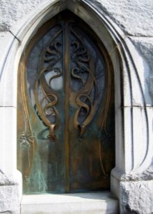 Es gibt auch Metallmodelle von antiken Türen, normalerweise sind diese Eingangsstrukturen. Meistens handelt es sich um massive Produkte mit einer großen Anzahl von hervorstehenden Elementen. Geschmiedete Eingangstüren sind sehr beliebt. Es ist sehr schwierig, mit eigenen Händen Kratzer auf Metall zu machen. Wenn Sie eine halbantike Metalltür kaufen möchten, müssen Sie daher vorgefertigte Fabrikmodelle oder Produkte bevorzugen, die den Effekt der Zeit beeinflussen.