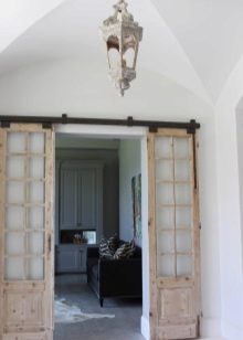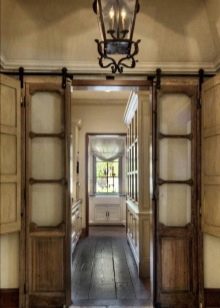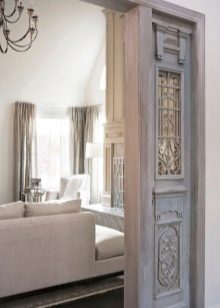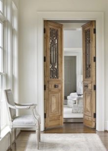 - Interroom. Diese Option wird im Innenbereich installiert und diese Modelle werden sowohl in Wohnungen als auch in Privathäusern oder Ferienhäusern verwendet. Diese Tür kann in einen speziellen Raum gestellt werden oder mit ihnen den Eingang zu allen Räumen im Haus dekorieren. Gewöhnlich gealterte Türen werden in Hallen und Wohnzimmern installiert. Innenausbauten sind nicht sehr sperrig, aber ihre Größe hängt von der Höhe der Decken und der Bodenfläche sowie von der Breite der Türöffnung ab. Dies kann eine große zweischalige oder konventionelle kompakte zweischalige Modelle sein.