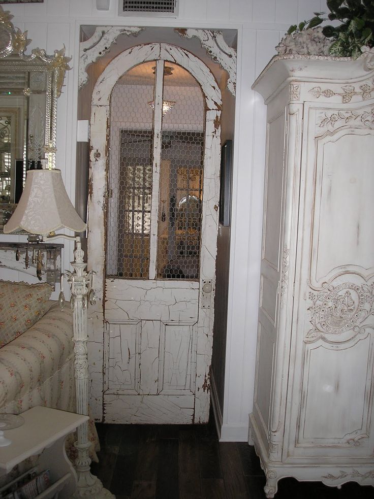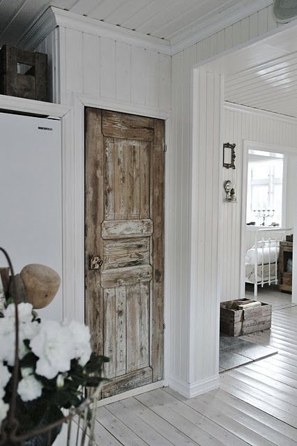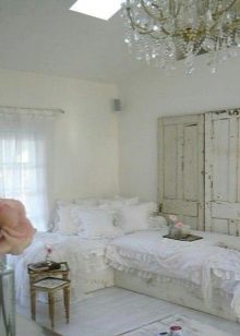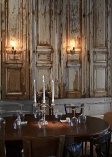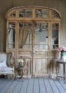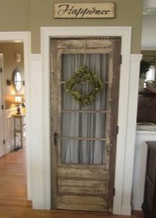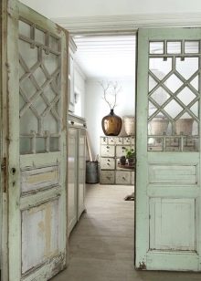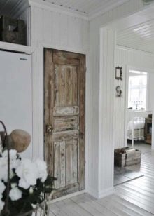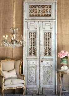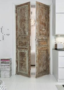Sehr oft werden Vintage-Türen in Wohnungen und Häusern gekauft, dekoriert im Geiste von Chebbi. Solche Modelle haben in der Regel Risse und sogar schäbige Oberflächen. Gewöhnlich sind solche Türen aus hellem Holz. Und um diesen Stil hinzuzufügen, kann ähnlich im Design-Schrank oder Bildschirm sein.