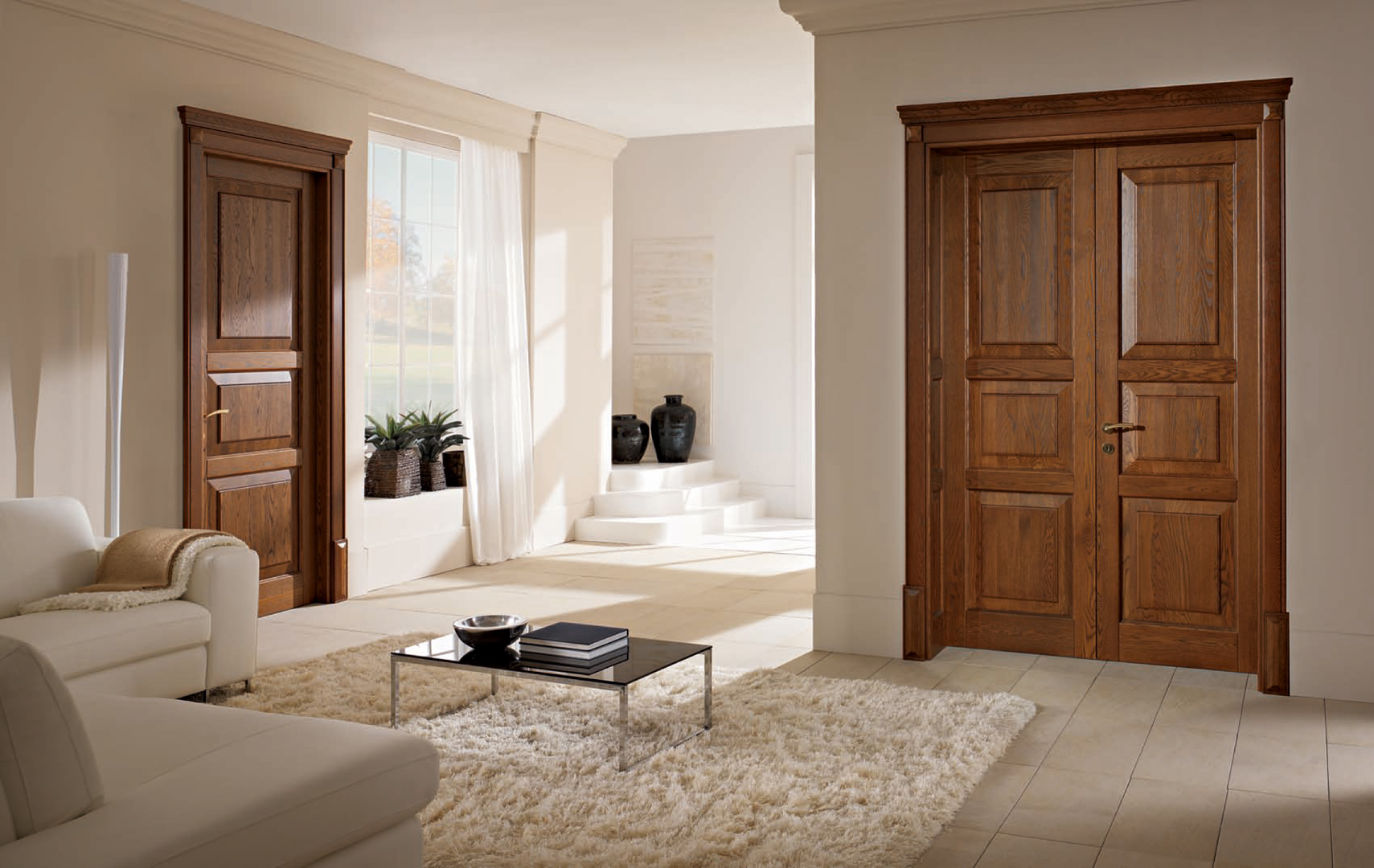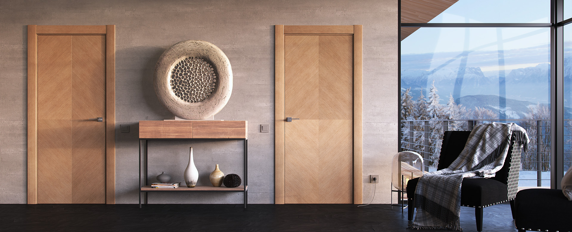 Die klassische Kollektion präsentiert sich in naturfarbenen Leinwänden. Die äußere Beschichtung dieser Modelle ist natürliches Furnier (Esche, Eiche, Sapeli, Makore). Jede Leinwand kann von einem von vier Plat- tenbändern begleitet werden: ein klassisches Modell mit oder ohne Bolzen, ein Band mit Kapitellen aus natürlichem Furnier oder eine Reihe von Massivholz.
