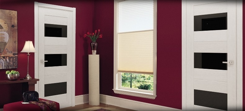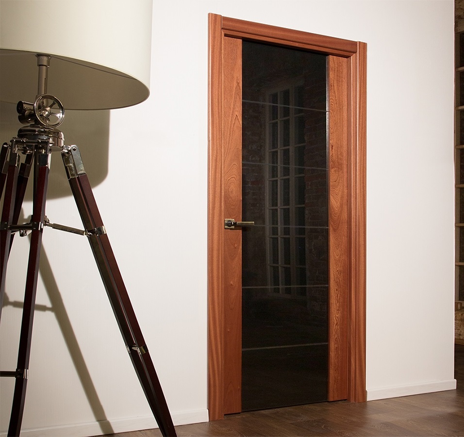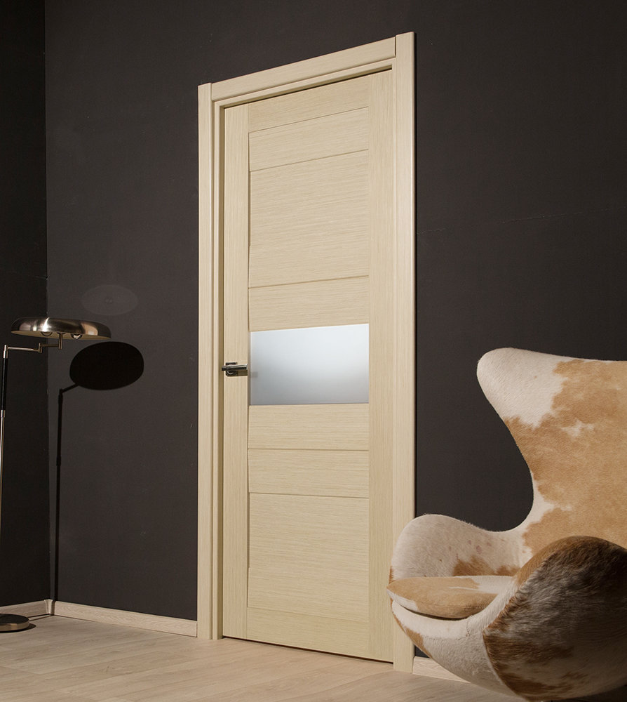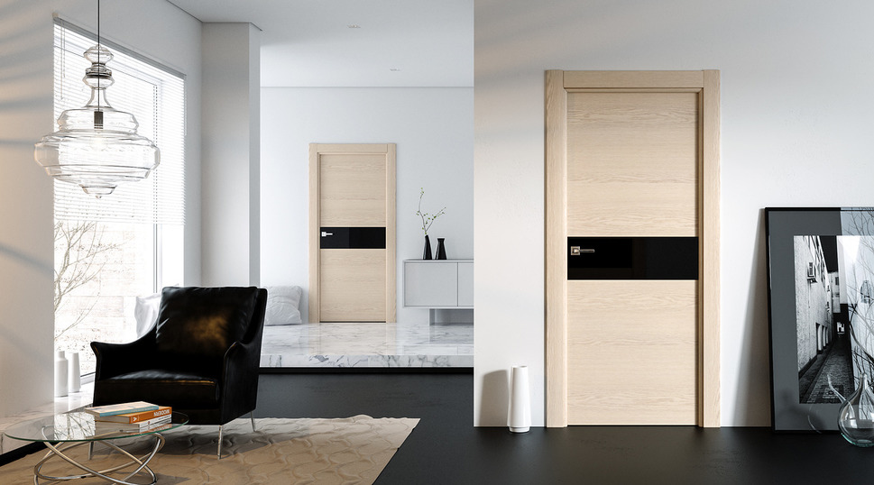 Türen aus Naturfurnier vereinen drei aktuelle Trends: Modernität, Minimalismus im Design und umweltfreundliche Materialien in der Dekoration. Die Modellpalette besteht aus 4 Leinwänden: zwei taub und zwei mit Glas. Für die Dekoration dieser Leinwand wurde bemaltes belgisches Glas mit einer Dicke von 4 mm verwendet, das einen satten, tiefen Farbton hat.