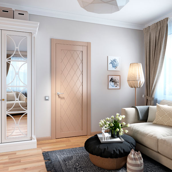 In der Modellpalette dieser Kollektion befinden sich 5 Leinwände mit linearen Motiven. Jede Leinwand ist nicht nur eine langweilige Platte, sondern ein echtes Stück Designkunst. Symmetrische oder asymmetrische Linien an der Türfront betonen den Minimalismus des Einfarbenmodells und machen es zum Hauptakzent im Raum. Wie für die Farbe verwendet es Pastellfarben: weiß, beige, grau, nur 11 Schattierungen.