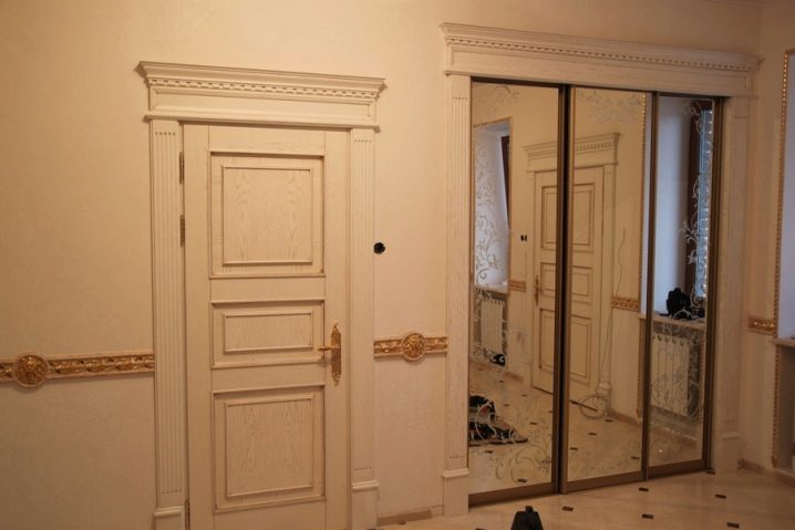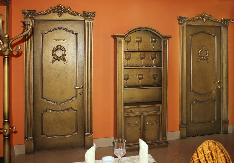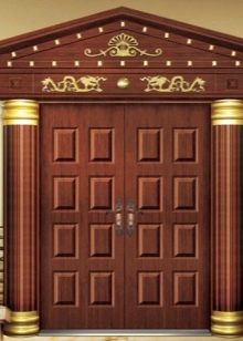 Eine Vielzahl von Modellen ermöglicht es Ihnen, die verschiedenen Mechanismen von Türen im Raum kreativ anzuordnen. In der Tat, neben der Tür selbst, hat das Portal auch eine Hauptstadt - eine tragende Zierde. Diese Leinwand kann verschiedene Formen haben: quadratisch, rechteckig, dreieckig, mit dekorativen Halbsäulen usw. Sie ist mit einem Muster oder Gemälde, Schnitzereien, Mosaiken oder Vergoldungen verziert. Je nach Budget und Stil des Interieurs wird das passende Design gewählt.