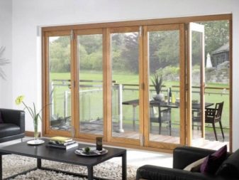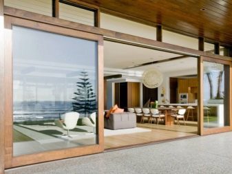 Es wird nicht empfohlen, Panoramatüren auf einem Holzrahmen zu machen, da Kunststoffkonstruktionen in diesem Fall viel weniger bruchanfällig, leichter und bequemer zu verwenden sind.