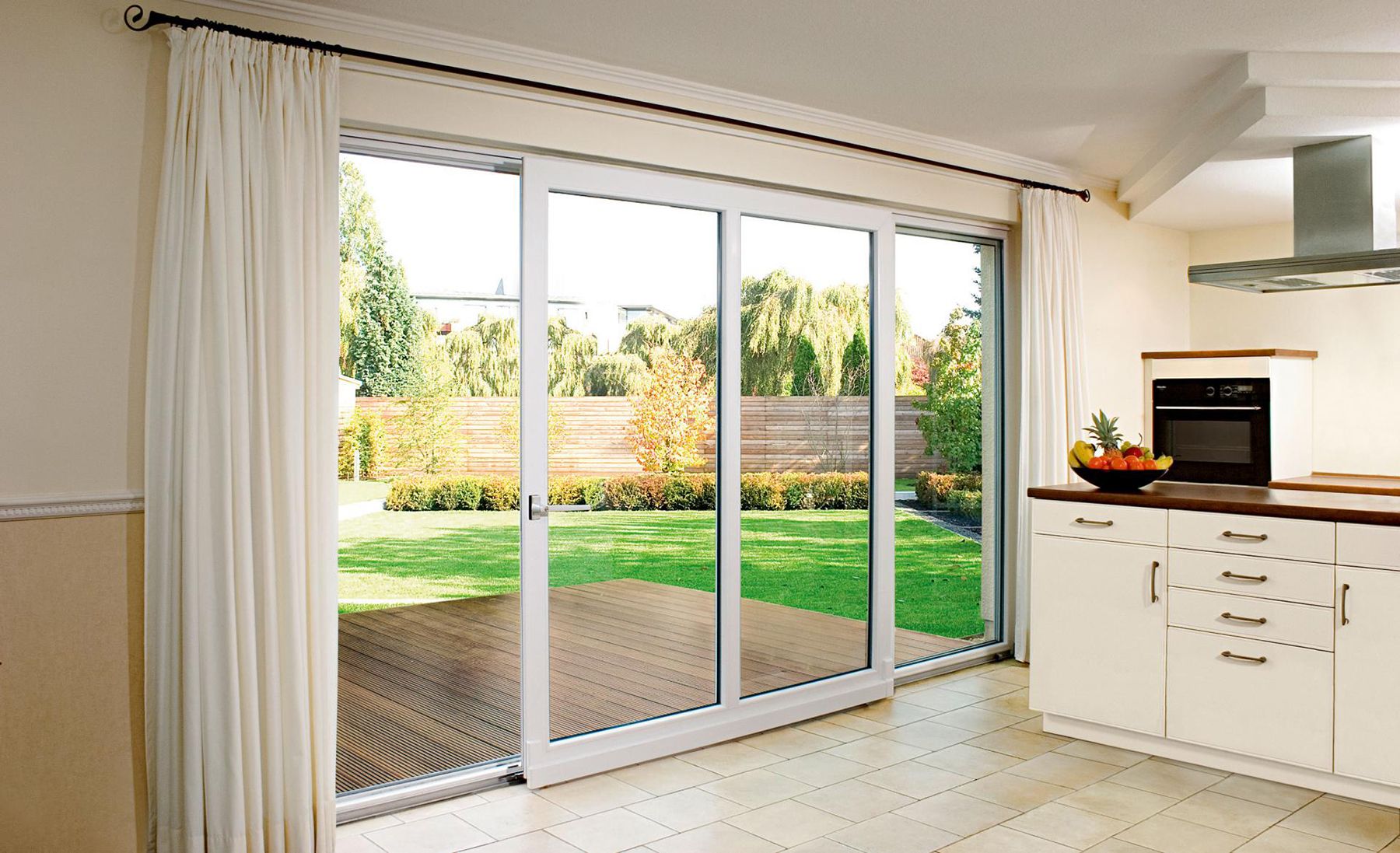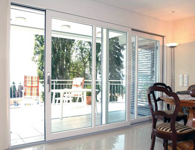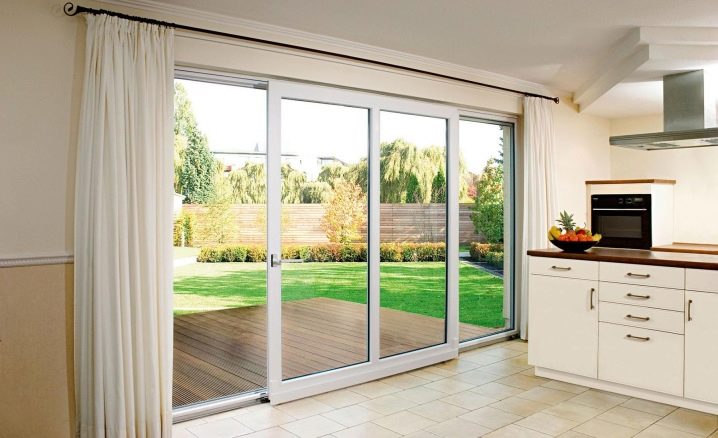 PVC wird bei der Herstellung von Schiebetüren verwendet. Kunststoff-Metall-Paneele bilden dauerhafte Strukturen zur Befestigung dieser Art von Türen und sind in großen Öffnungen oder Wänden von Häusern installiert.