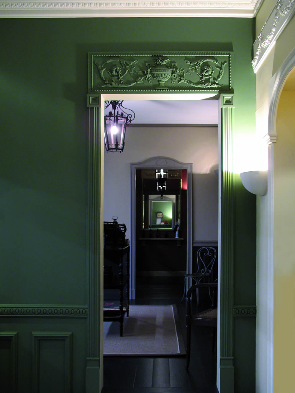 Meistens sind sie über den Eingangstüren und nicht in den inneren Öffnungen angebracht. Obwohl, wenn das Haus sehr groß ist und die Höhe der Decken es erlaubt, sie zu installieren, ohne die Aufmerksamkeit vom Rest der Situation nur auf das Portal abzulenken, ist seine Installation möglich.