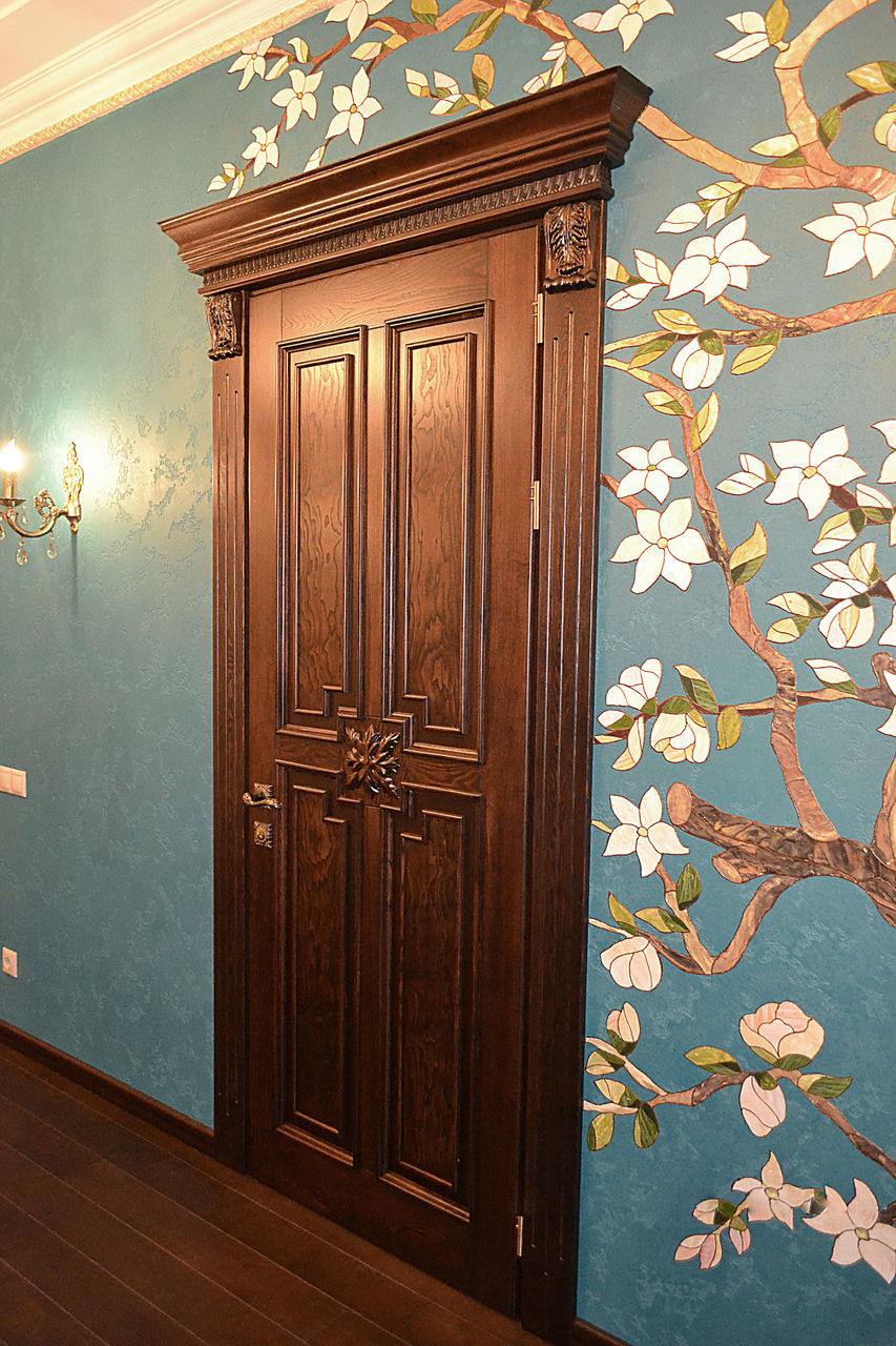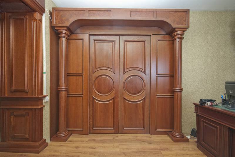 Holzportale gelten als eine der hochwertigsten und langlebigsten Möglichkeiten für die Ausführung dieser Arbeiten. Meistens sind sie aus Edelhölzern: Eiche, Buche, Walnuss, Mahagoni. Sie haben eine große Textur, die bei der Herstellung von Holzpaneelen luxuriös aussieht und auch reich an Nuancen ist.