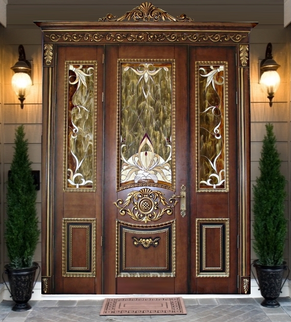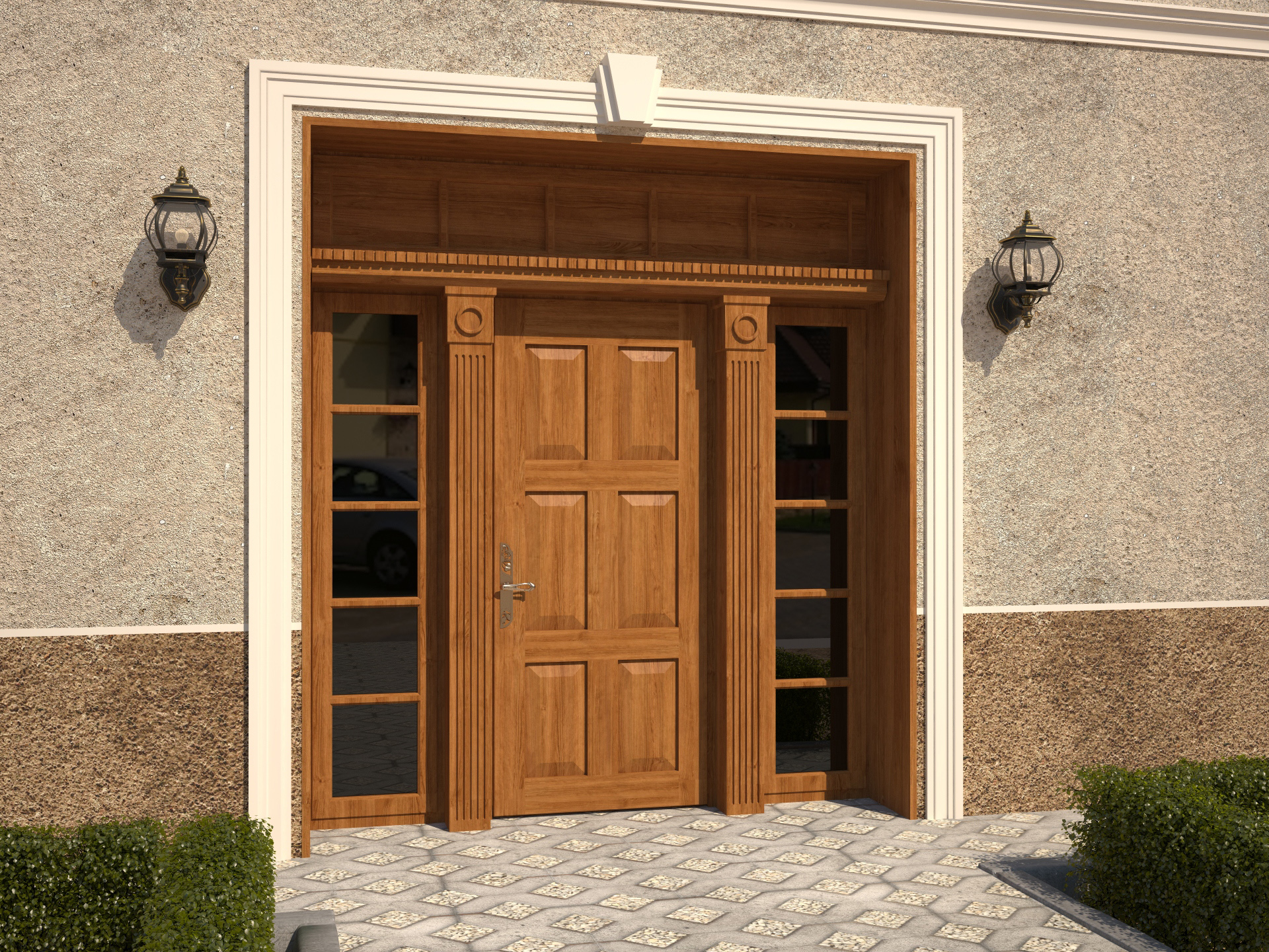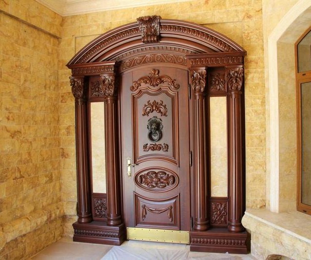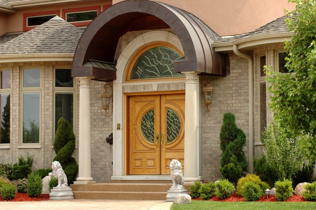 Da die Türöffnung das erste ist, was sie sehen, wenn sie das Gelände betreten, kann eine der Türen, um diesen Effekt zu erzielen, eine Portaltür sein. Diese Designtechnik ist seit langem bekannt, insbesondere luxuriöse Portale finden sich in luxuriösen Palästen der Vergangenheit. Jetzt ist diese Technik wieder in Mode.