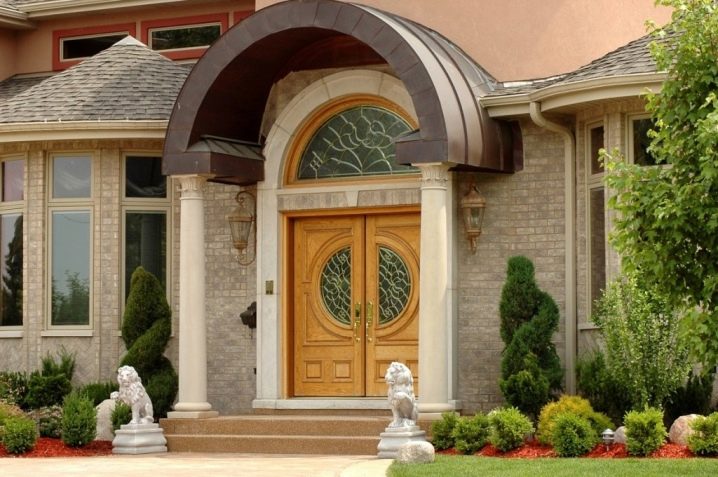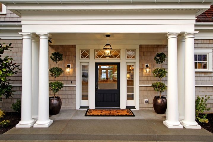 Anfangs erschienen Portale als luxuriöse und verlockende Entwürfe von Eingangstüren zu religiösen Gebäuden und Palästen. Natürlich hatten sie meistens eine große Größe und einen größeren Umfang als es jetzt erlaubt ist, an der Haustür zu arrangieren, aber einige gemeinsame Merkmale blieben. So ist es in einigen Bereichen möglich, die Öffnung mit dekorativen Säulen und luxuriösen Kapitellen zu schmücken. Es ist auch möglich, Flecken aus Naturstein oder Mosaik und die Verwendung von Glas und Glasmalerei in den oberen und seitlichen Teilen der Tür.