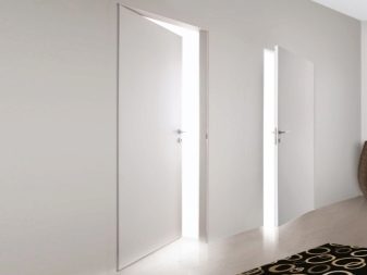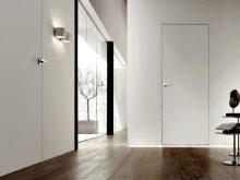 - Türen mit versteckten Kanälen sofort puttiert und direkt unter dem Interieur ausgewähltDaher können sie in der Wand komplett unsichtbar sein - nur ein dünner Umriss ist sichtbar. Zusätzlich unterteilt in einseitig, nicht wahrnehmbar einerseits und bilateral, die auf beiden Seiten nicht wahrnehmbar sind. Letztere werden in der Regel seltener behandelt, da sie mehr Raum beanspruchen (auf der Trennwand zwischen Räumen von 75-100 mm) und schwerer zu montieren sind. Ja, und in der Regel ist die Tür nur von der Eingangsseite her verborgen.