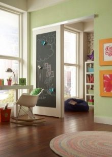 Von oben sind sie mit Acrylfarben bedeckt, ein Amalgamspiegel, oft einfach lackiert. Oft sind diese Türen mit Tapeten bedeckt oder im Schatten der Wände gemalt, Damit können Sie sie komplett unsichtbar machen: