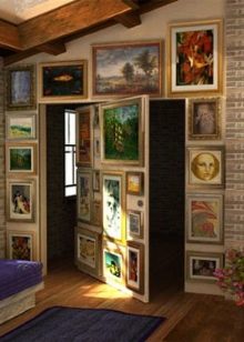 Natürlich darf nicht unerwähnt bleiben, was für eine Lust eine solche Tür ins Innere bringt. Er wird sofort ungewöhnlich und kreativ, die Einfachheit verschwindet - auch wenn keiner der Gäste die sichtbaren Veränderungen bemerkt, wissen Sie, dass Sie ein kleines Geheimnis in Ihrem Haus haben. Dies ist auch ein guter Grund, sich zu rühmen: Ihre Freunde werden überrascht sein zu erfahren, dass hinter dem Spiegel ein Ruheraum ist, und indem Sie einfach das Schrankregal wegschieben, gelangen Sie auf den Balkon!