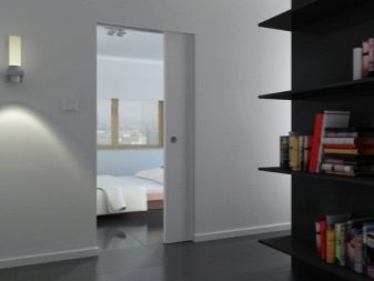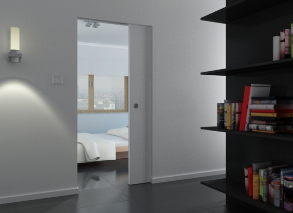 - Gleitendes Design oder KassettenmechanismusTür mit Kassette. Unterscheidet sich bei einem Spezialfall für Schiebetüren und verdeckte Scharniere. Das Gehäuse ist eine Box, die in einer Wand montiert ist, und die Tür versteckt sich in ihr, genauer gesagt, bewegt sich in der Wand, in der es installiert ist.Dadurch schwingt das Türblatt nicht vor und zurück, sondern geht leise zur Seite. So sparen Sie Platz, was besonders in kleinen Räumen und Wohnungen wichtig ist, sowie Zeit, denn sie sind so einfach wie möglich installiert. Solche Strukturen absorbieren Geräusche perfekt und schließen leise und öffnen sich, können sowohl mechanisch als auch elektrisch sein. Sie kosten ziemlich demokratisch.