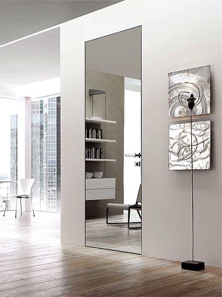 Sie können zwei Vögel mit einem Stein töten und eine gespiegelte Tür in Ihrem Haus installieren. Auf der einen Seite wird es die Rolle der Ganzkörperspiegel spielen, das ist nie überflüssig, und auf der anderen - ist der Eingang, von deren Existenz niemand denken würde.