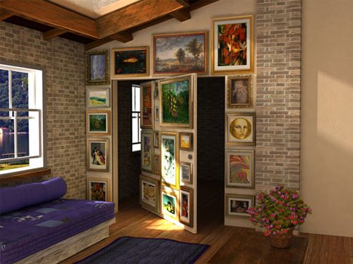 Es gibt einen völlig entgegengesetzten Trend bei der Dekoration versteckter Türen. Sie können so dekoriert werden, dass sie komplett unsichtbar sind.