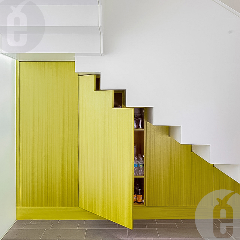 - Unter dem Kabinett. In diesem Fall kann das Öffnen der Tür etwas schwieriger sein, weil das Gehäuse selbst mehr Gewicht hat als ein Vorhang oder Spiegel. Daher ist es nicht empfehlenswert, zuerst einen großen Schrank zu installieren - schließlich, um die Tür zu verstecken, reicht es, ein Schrank von seiner Größe zu haben, zu breit oder zu hoch, um das Überqueren zu erschweren und ständig an die Wände zu klopfen. Und zweitens sollten Sie diesen Schrank nicht mit Dingen beladen, um die Tür wieder ohne Lärm zu öffnen.