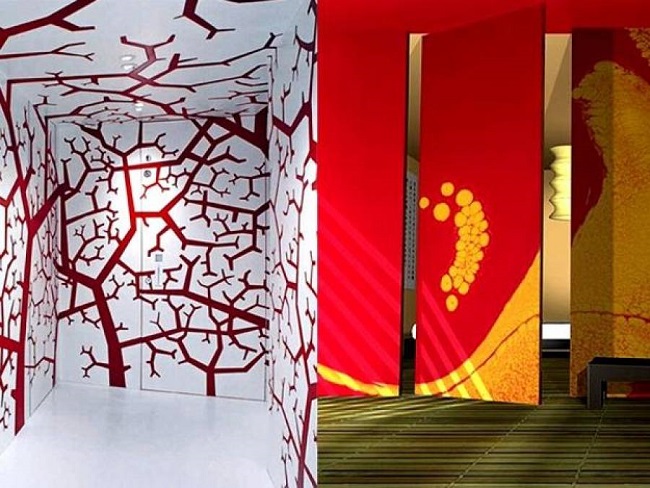 Wenn Sie auch eine unsichtbare Tür in ein auffälliges Möbelstück verwandeln wollen, können Sie immer die üblichen Dekorationsmethoden anwenden - mit eigenständiger Tapete überkleben (Kontrast zur Wandtapete mit Bildern oder Mustern, Fototapeten), mit einem Möbelhefter Stoff drapieren, mit Aufklebern bemalen oder kleben (alles, was Sie wollen, oder selbstklebendes Papier). Besondere Erwähnung verdient die Decoupage-Technik (die ausgeschnittenen Teile werden auf der Basis montiert), das Beschneiden mit Hilfe von Formteilen und Mosaik.