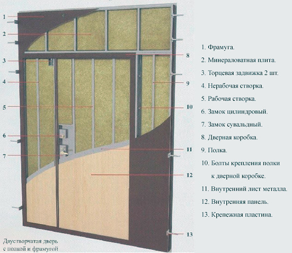 Nicht standardisierte Produkte, ergänzt durch einen stabilen Türrahmen. Für die Herstellung von Strukturen verwendet hochwertiges Metall, das Festigkeit und Haltbarkeit während des Gebrauchs bietet. Am häufigsten werden Eisenanker verwendet, um die Box zu befestigen.