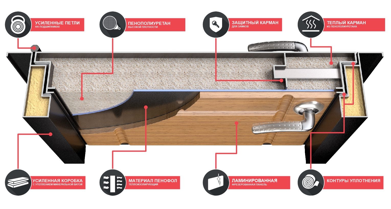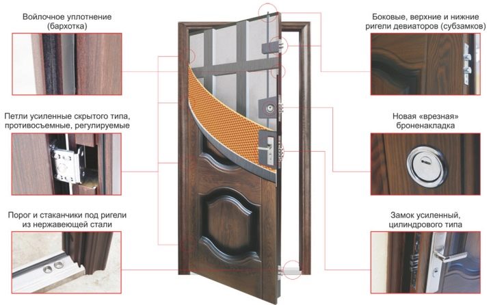 Die Wärme- und Schalldämmeigenschaften der Konstruktion hängen von ihrer Qualität ab. Grundsätzlich wird Mineralwolle für Eingangstüren verwendet. Oft in der Basis von Schaum und Polyurethanschaum verwendet. Wenn das Modell billig ist, ist das Vorhandensein der Isolierung nicht vorgesehen.