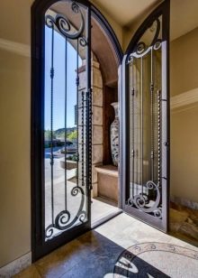 - Tambour. Tambour Gittertür kann als guter Ersatz anstelle des üblichen Stahls dienen, der in der Regel das Eindringen von Licht in den Vorraum verhindert, aber viel teurer. Hier können Sie ein einfaches Swing-Modell verwenden, das sich in besonderer Schönheit nicht unterscheidet.