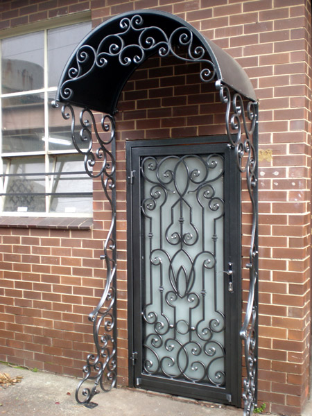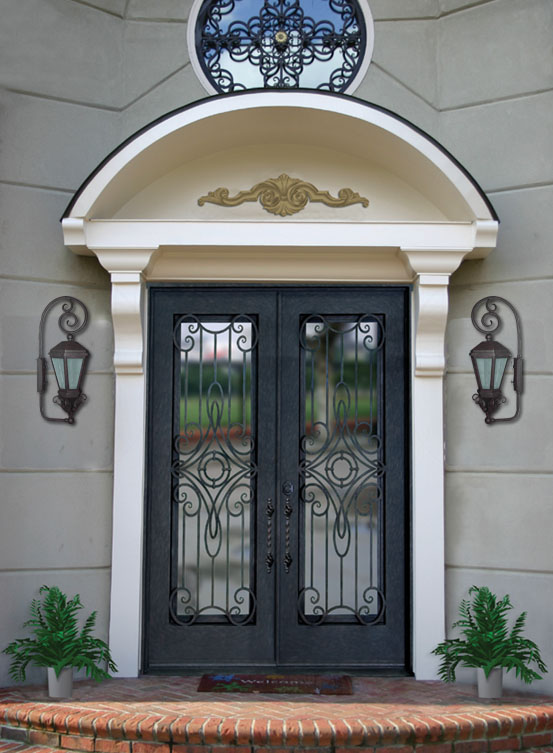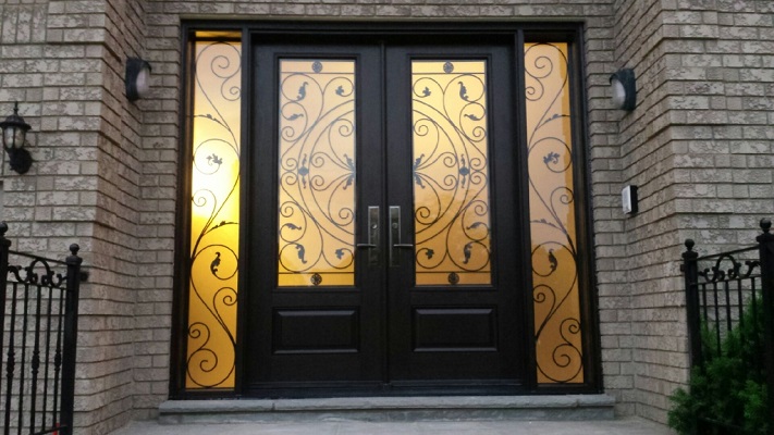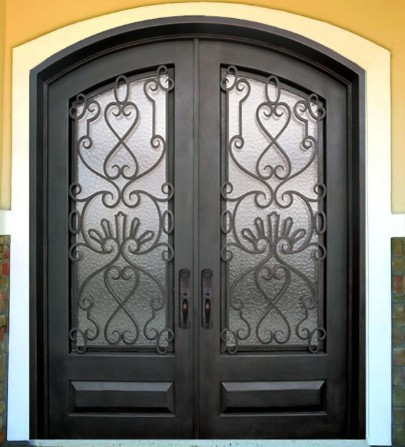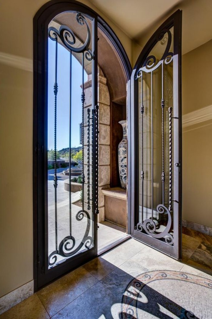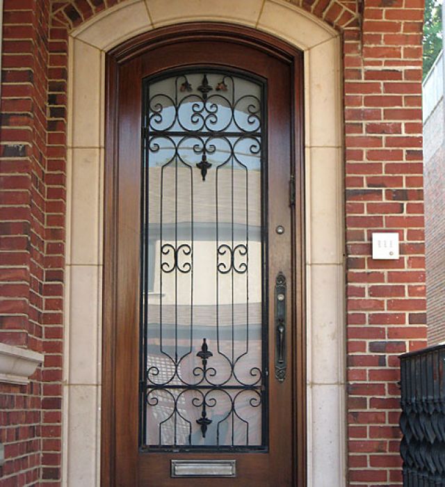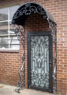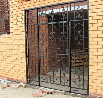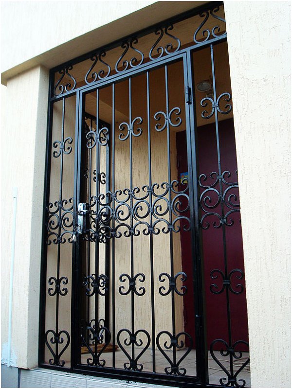 - Ein schönes Gitter wird über dem Glasfenster angebracht (Metallschmieden wird als zusätzliches Dekor verwendet).